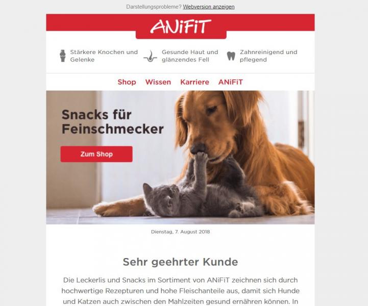 ANiFiT si affida anche alle misure digitali nel marketing. Attraverso l'uso del marketing professionale online con il marketing sui motori di ricerca, l'ottimizzazione dei motori di ricerca (SEO) e il social media marketing, la visibilità in rete aumenta in modo significativo. Sul sito web viene creato anche un nuovo Blog, che contiene articoli informativi sul mondo della salute e della nutrizione animale.
